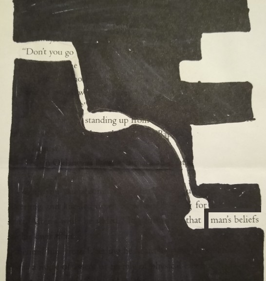 Blackout #172 Don’t you go standing up for that man’s beliefs. -Kel Dayheart Share this: Click to share on X (Opens in new window) X Click to share on Facebook (Opens in new window) Facebook Like Loading... Leave a comment Cancel reply Δ