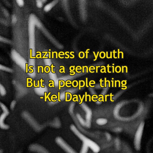 Haiku #163 Laziness of youth/ Is not a generation?/ But a people thing -Kel Dayheart Share this: Click to share on X (Opens in new window) X Click to share on Facebook (Opens in new window) Facebook Like Loading... Leave a comment Cancel reply Δ